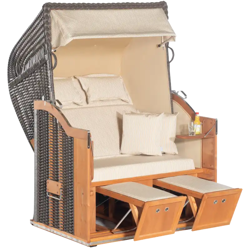 Halbliegemodell, Zweisitzer, PE-Kunststoffgeflecht cappuccino, Variopolsterung: Stoff-Dessin 31, Innenstoff uni sand